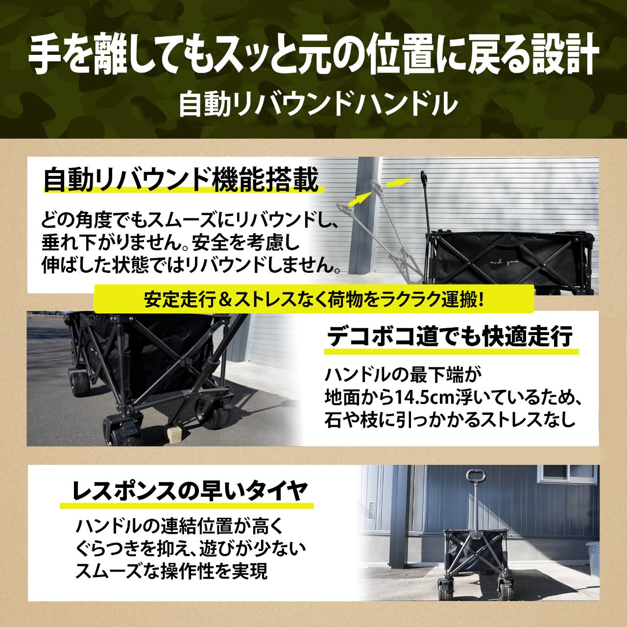 - 【2025年モデルandzero キャリーワゴン】 ハンドルリバウンド式搭載、ハンドルから手を離すと元の位置に自動リバウンドする フレームを設計変更して従来の商品より30%アップの耐荷重を実現 【イケてる大人のアウトドアワゴン】 【タフさ × 高級感 × 実用性】 これ一台で、ワンランク上のアウトドアを。 #キャンプの新定番 #キャリーワゴン #スマート収納 ✅【一台で何役も】 ただ物を運ぶだけではない。大人のアウトドアを、もっと快適でスタイリッシュに。これ一台で運搬・収納・テーブルとしても活躍!「無骨でタフ。それでいて洗練されたデザイン」を追求した、大人のためのアウトドワゴン。