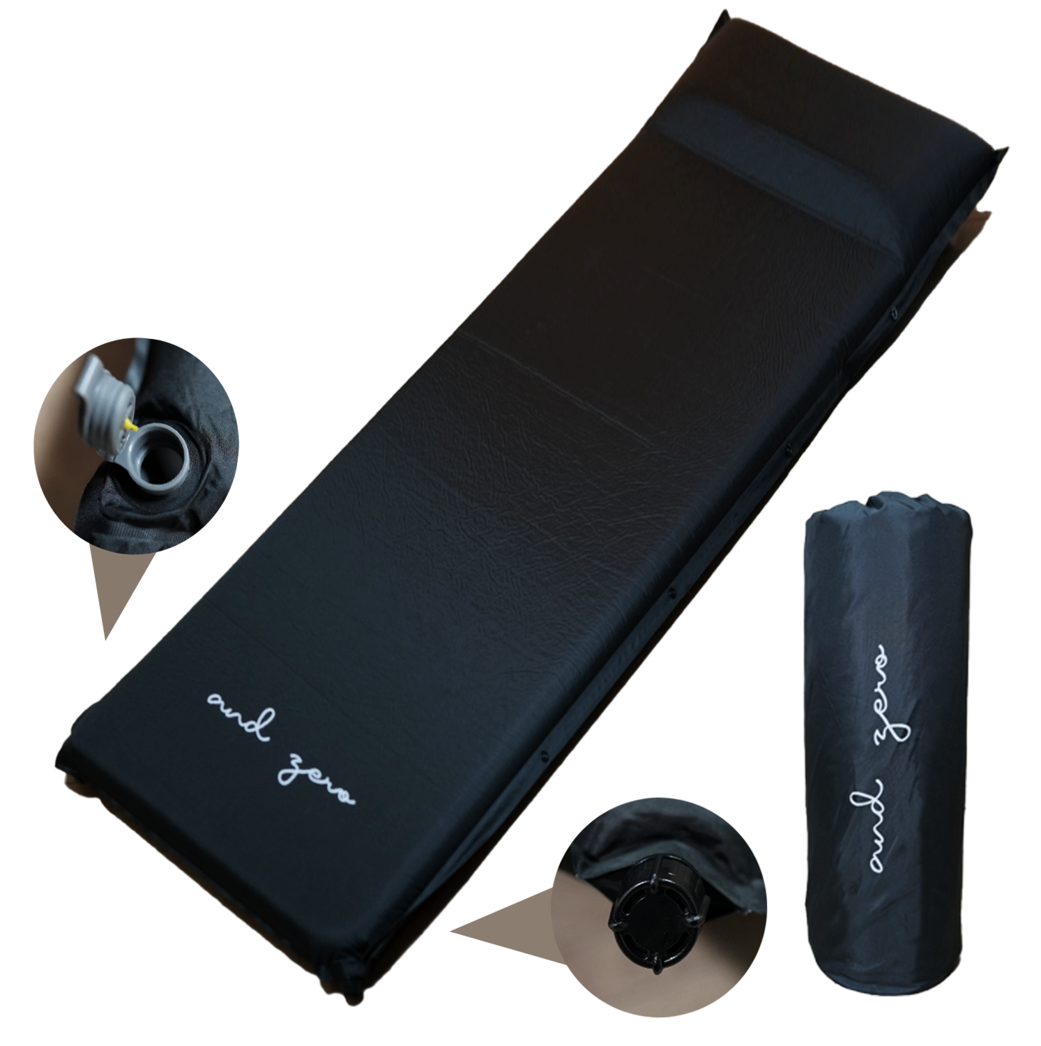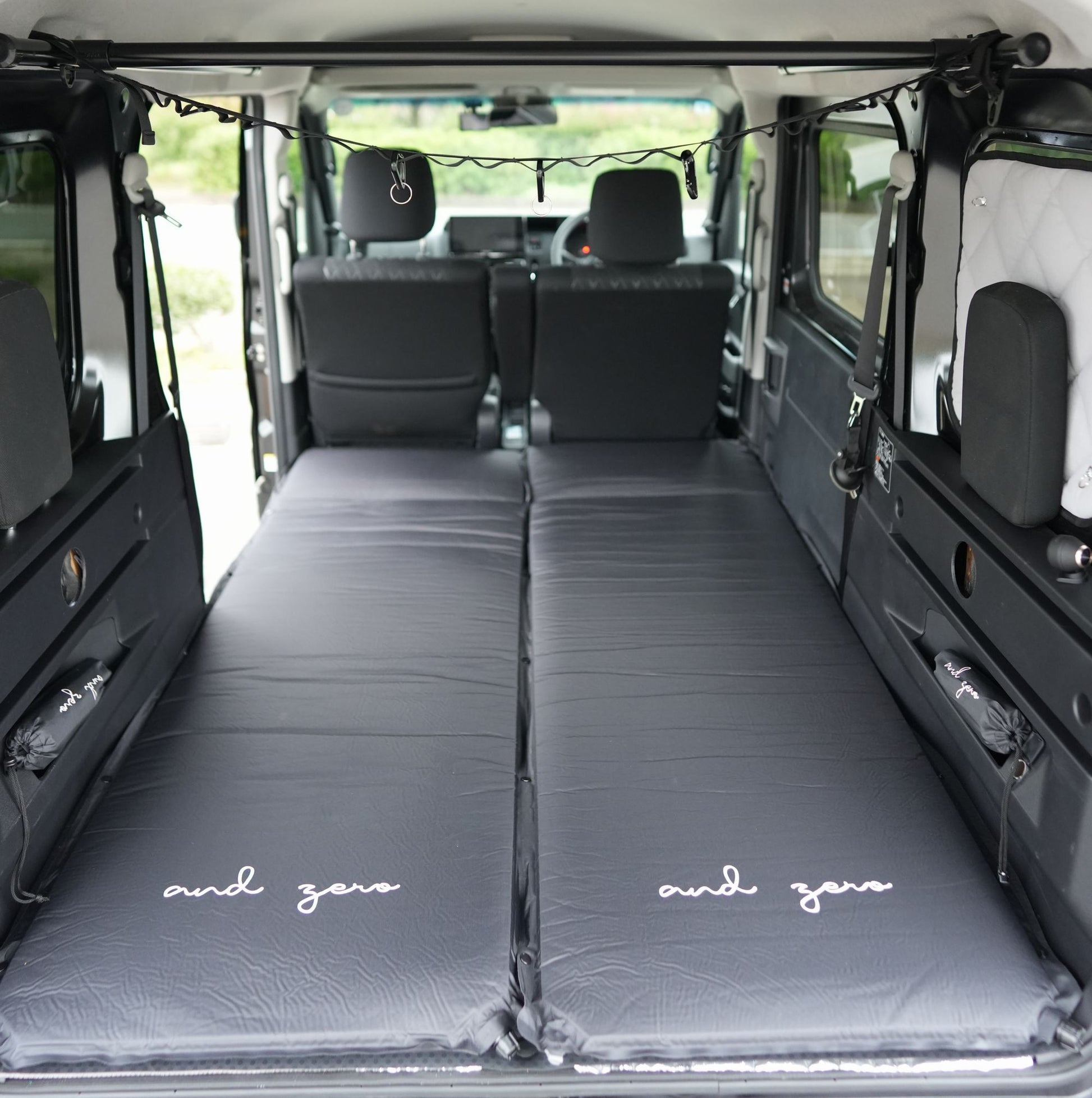 andzero 軽バン車中泊マット キャンプマット エアーマット 枕付き 自動膨張 連結可能 インフレーターマット 厚手6㎝枕9㎝ 収納袋付き 防災 ブラック
